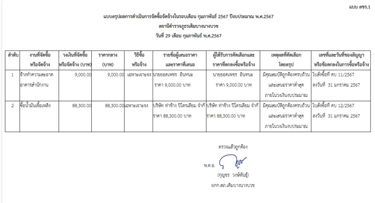 O15 สรุปผลการจัดซื้อจัดจ้างรายเดือน