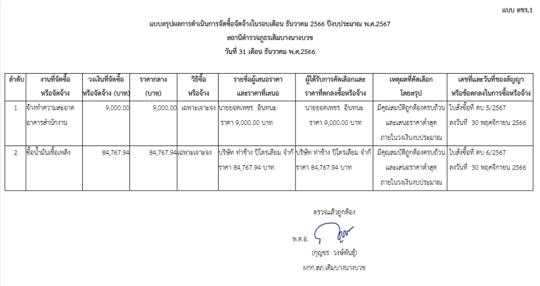 *สรุปผลการจัดซื้อจัดจ้างเดือน ธันวาคม 2566 ปีงบประมาณ พ.ศ.2567*