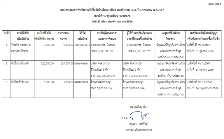 *สรุปผลการจัดซื้อจัดจ้างเดือน พฤศจิกายน 2566 ปีงบประมาณ พ.ศ.2567*