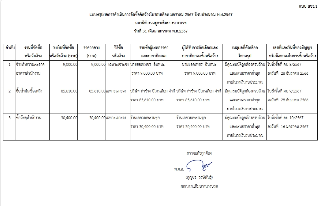 *สรุปผลการจัดซื้อจัดจ้างเดือน มกราคม 2567 ปีงบประมาณ พ.ศ.2567*