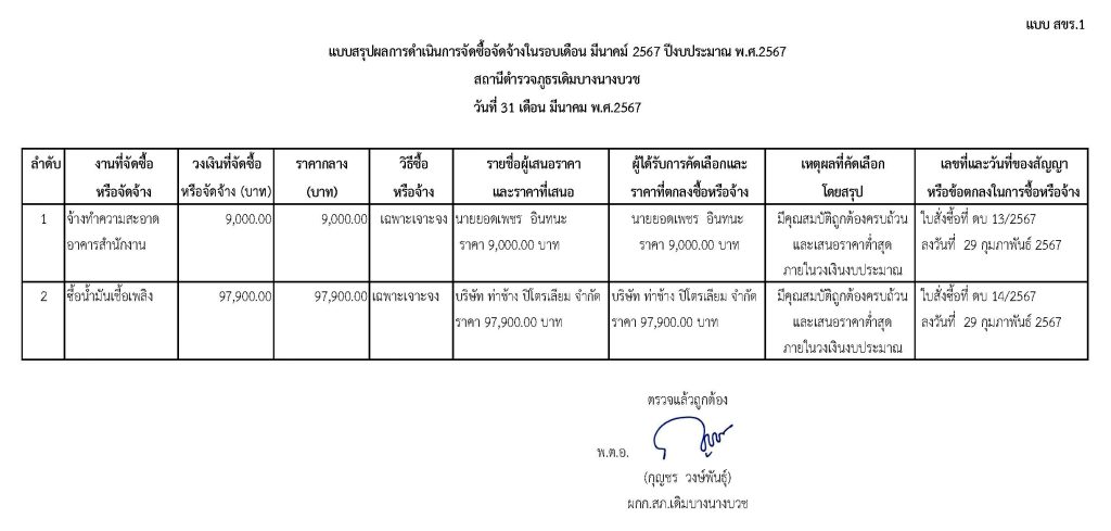 *สรุปผลการจัดซื้อจัดจ้างเดือน มีนาคม 2567 ปีงบประมาณ พ.ศ.2567*